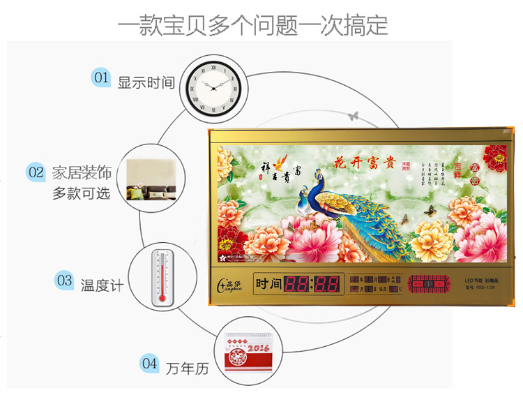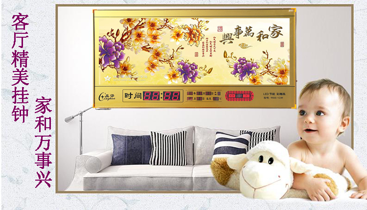 新房客廳家居日歷掛鐘2019新款電子萬(wàn)年歷數(shù)碼壁掛家用創(chuàng)意鐘表LED客廳日歷掛鐘