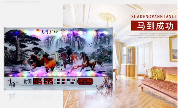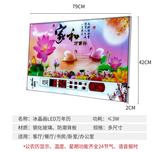 新房客廳裝飾日歷掛鐘,家和風景萬年歷,超薄七彩燈光更漂亮