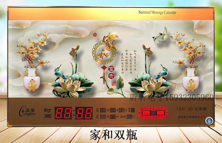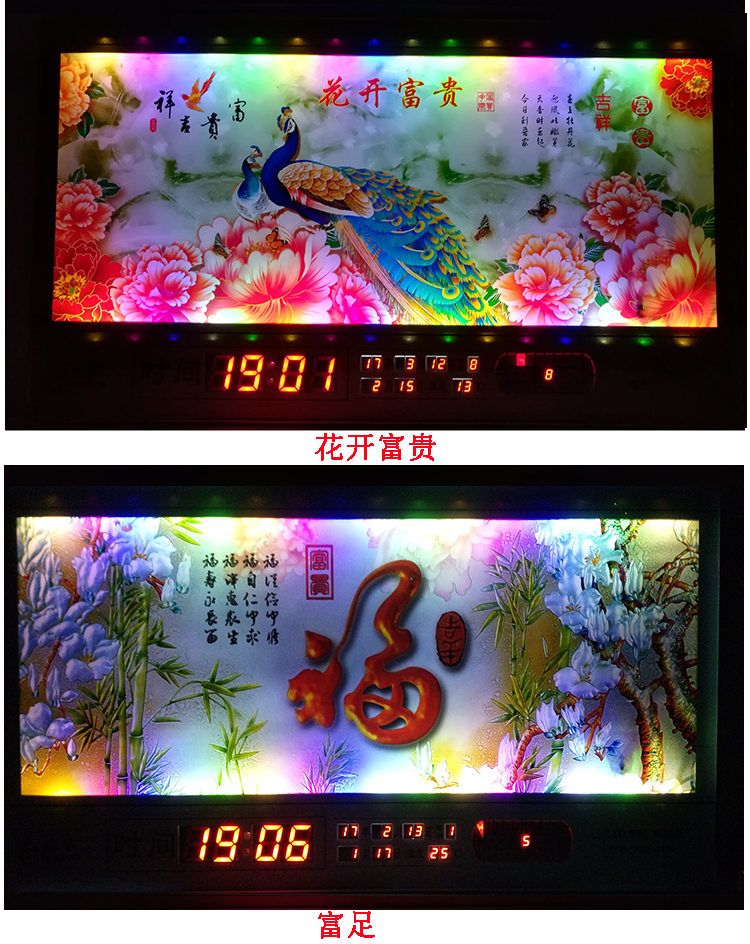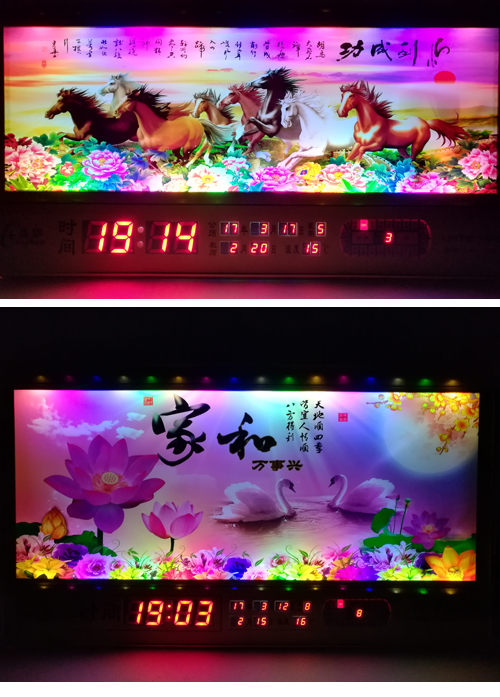 新房客廳裝飾日歷掛鐘,家和風(fēng)景萬年歷,超薄七彩燈光更漂亮